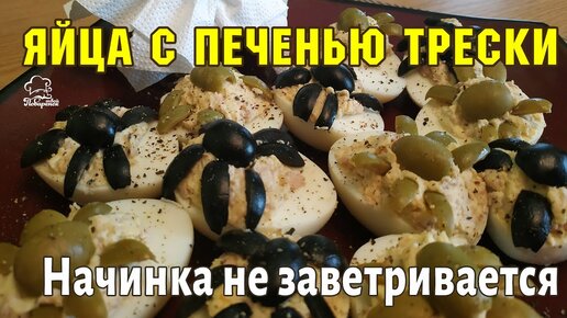 🐔 ПРАЗДНИЧНЫЕ ЗАКУСКИ Фаршированные яйца (фарш из печени трески) на Хэллоуин "ВЕСЕЛЫЕ ПАУЧКИ"