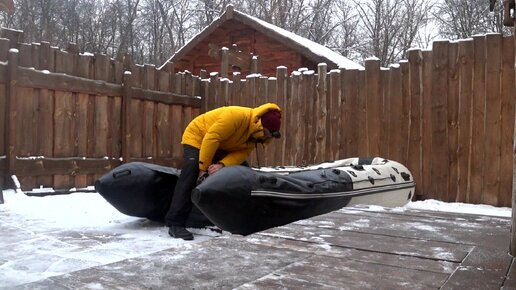 Сворачивание лодки зимой. Тяжелая задача для бронированной НДНД лодки длиной 4 метра