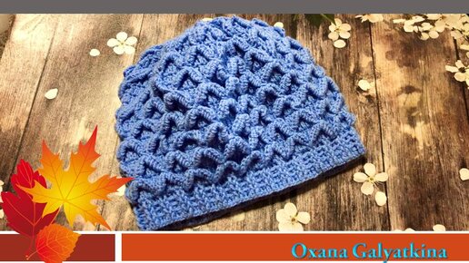 Шапочка крючком 3D узор ромбы.Beanie crochet.