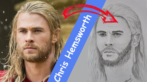 Как нарисовать Криса Хемсворта (Тора), портрет карандашом