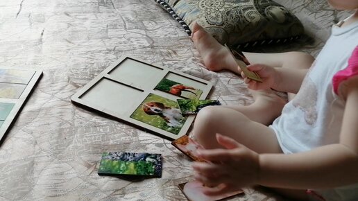 1г 9мес. Методика "Разрезные картинки". Дочь научилась складывать целую картинку из половинок 🧩