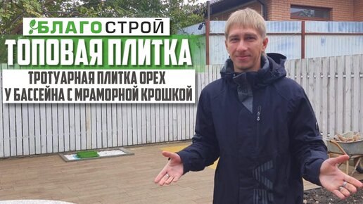 Обзор объекта. Плитка Стоунвуд и мраморная крошка у бассейна.