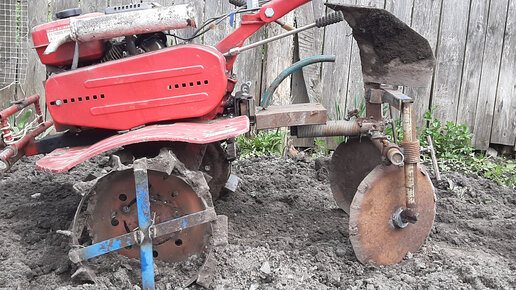 Грунтозацепы и посадка картофеля мотоблоком . Окучник распашник 2 в одном.