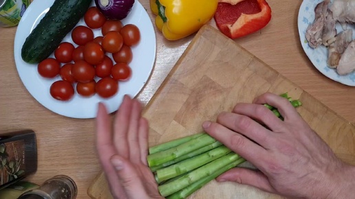 Курица, спаржа и овощи - замечательное решение для лёгкого и в то же время калорийного салата.