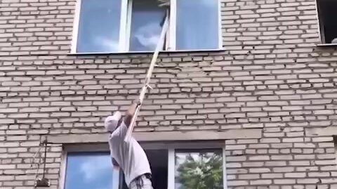 Спасение застрявшего в окне кота закончилось всеобщим победным ликованием участников