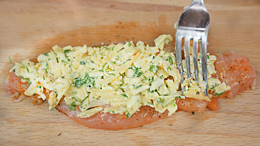 Закрутил начинку в рулетики и обмакнул в сухари: теперь всегда так делаю (нежнее и вкуснее куриного филе у меня не получалось)