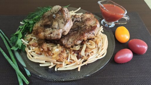СОЧНАЯ свинина на кости🥩 с гарниром.🍝Идеальный мужской ужин.
