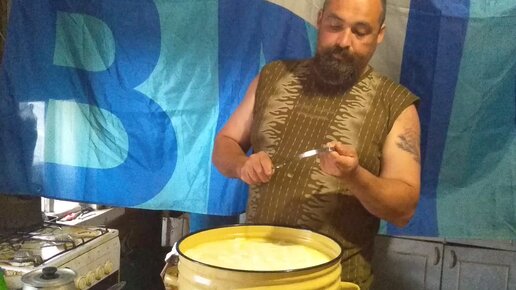 Каждый, кто держит коз, должен научиться варить твёрдый козий сыр Шевр. Показываю как. Нарезаем колье.