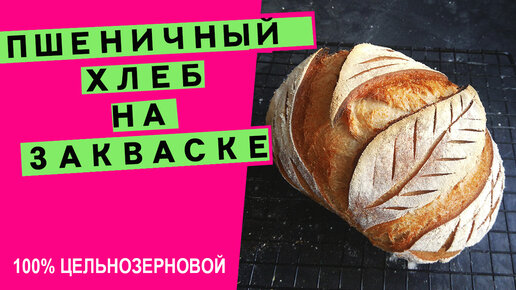 Цельнозерновой пшеничный хлеб: ПЫШНЫЙ, на закваске (ручной замес и формовка)