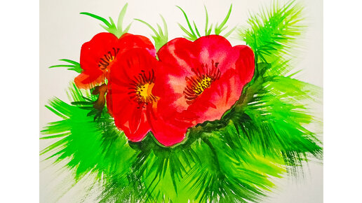 🎨🖌Акварельный рисунок красных цветов🌹🌹🌹