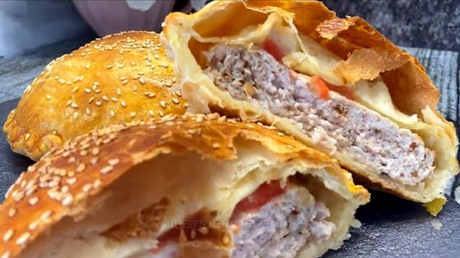 Беру фарш и слоеное тесто: готовлю "ленивый бургер". Делюсь рецептом