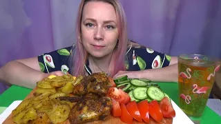Мукбанг куриные крылья с картошкой запеченные в духовке, овощи///mukbang крылышки куриные ,картошка///еда на камеру.