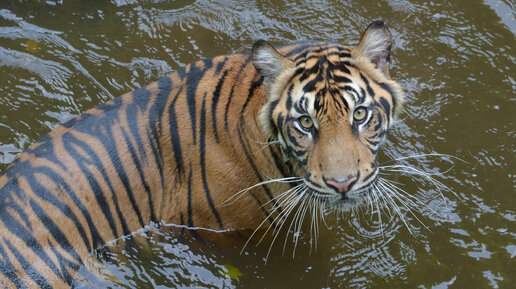 Тигр отлично плавает и нежен к своим очаровательным малышам