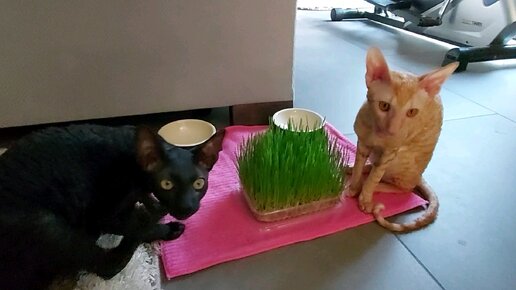 Первый раз пробуют траву и йогурт, кот разочарован😄