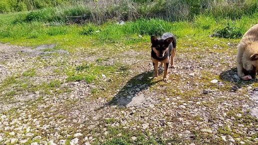 Как всегда приехал покормить бездомных собачек,их было четыре.