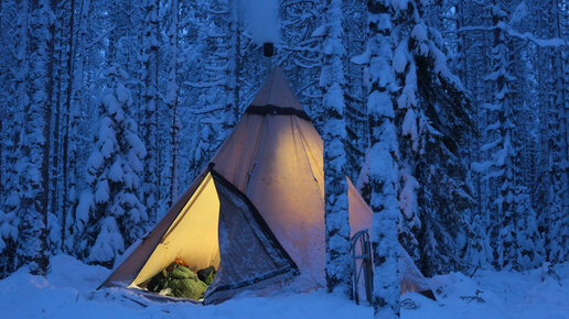 НОЧЁВКА В ЗИМНЕМ ЛЕСУ - Чум с печкой - Зимняя Сказка