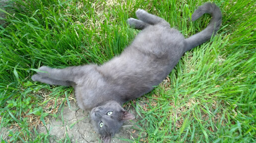 Очень смешной дымчатый кот с изумрудными глазами