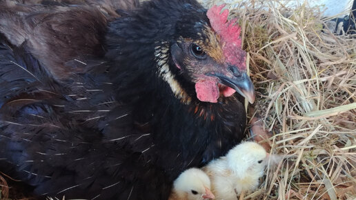 Курица решила стать мамой, подложили яйца. Вот что получилось.
