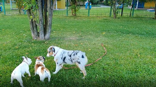 Французские бульдоги Варя и Пеля не поделили австралийскую овчарку