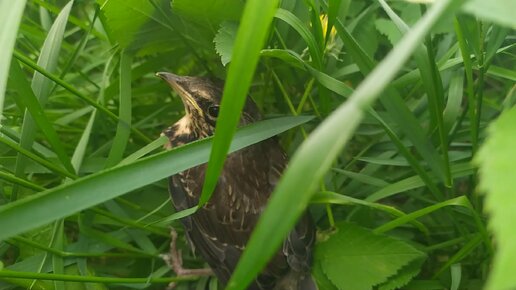 Птенец выпал из гнезда. По лугу бегал и пытался взлететь.