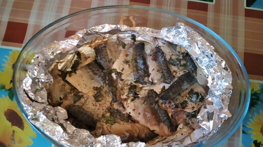 Сочная скумбрия, запеченная с зеленью и чесноком