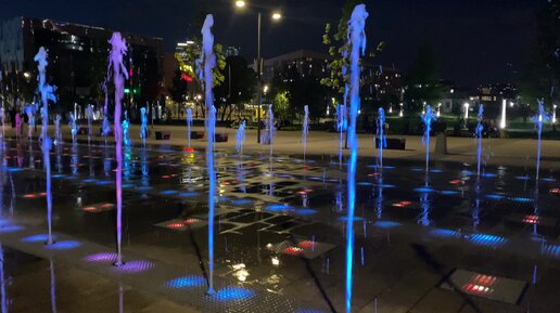 Ну очень красивый сухой фонтан с подсветкой в парке Ходынское поле/Москва 2021