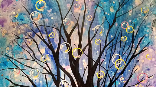Мастер Класс Акрил по сырому с дорисовкой. Дерево. Часть 2.