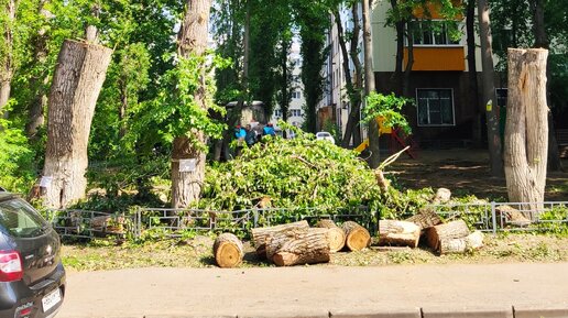 Как в городе спиливают большие деревья. Подсмотрели технику.