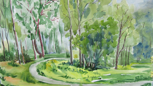 Кемеровская художница Галина Куськова пишет с натуры свой акварельный этюд в городском парке. Фото работы представлено вначале
