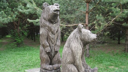 Сибирские медведи в городском парке радуют посетителей своим присутствием