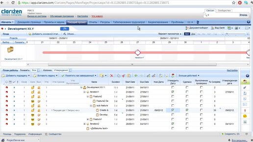 Clarizen Урок 3. Быстрое введение в Табеля с процессами