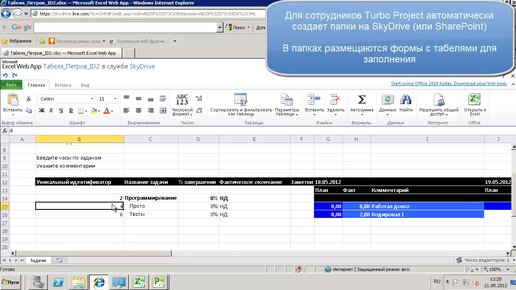 Учет рабочего времени с помощью MS Project и MS OneDrive