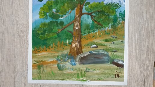 Быстрая картина гуашью "Сосна". Правополушарное рисование
