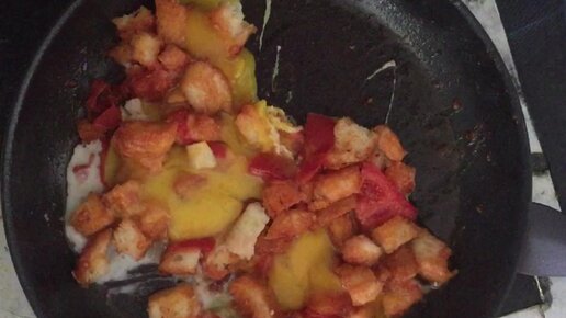 Яичница с помидорами и хлебом. Самый любимый завтрак мужа