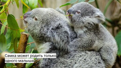 Сумчатый медведь ест только листву. А новорожденный из 10 грамм вырастает в коалу массой до 17 килограммов