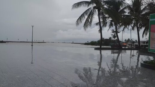 Почти зеркальная набережная, в которой отражаются пальмы