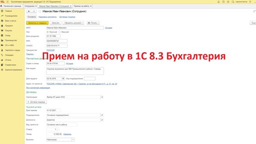 Как принять сотрудника на работу в с 1С Бухгалтерия 8.3
