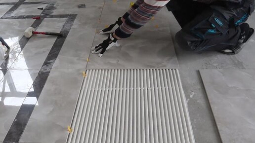 Подготовка и укладка ковра из керамогранита, весь процесс.