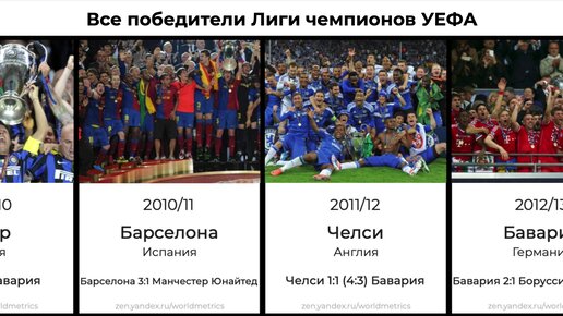 Все победители Лиги чемпионов с 1956 года + результаты всех финалов