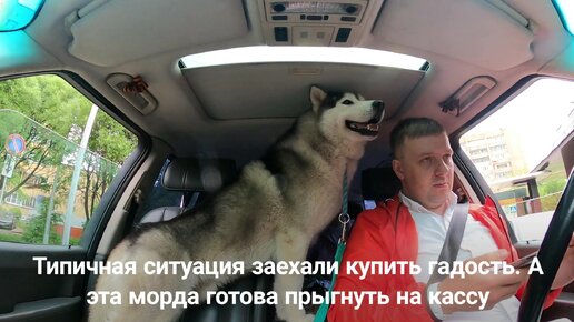 Типичная поездка в город с хаски, даже гадость не получается съесть первым.