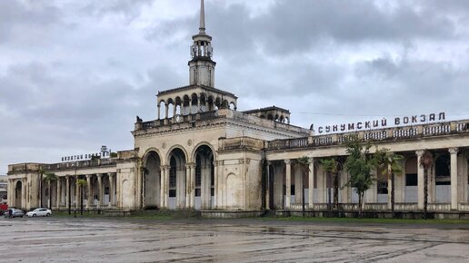 Разрушенный вокзал, куда ещё приходят поезда РЖД. Показываю с высоты. Вот она свободная Абхазия!