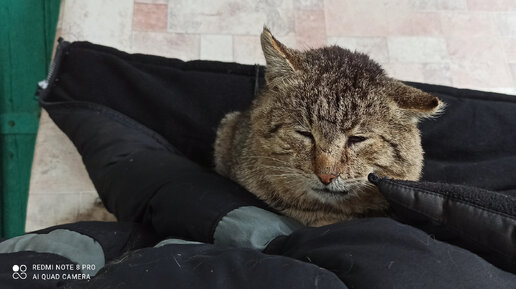 Наступил тихий вечер. Симба с Лаской умываются. Симба стал похож на китайца.