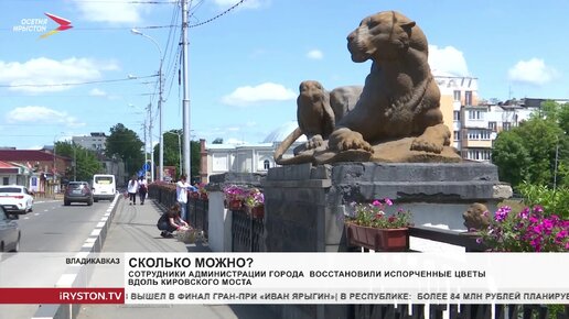 Сотрудники Администрации г. Владикавказа восстановили испорченные цветы вдоль Кировского моста