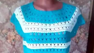 Такая вязаная вещь должна быть в шкафчике. Красивая футболочка.