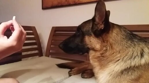 Умная овчарка! Таблетку запивает водой!