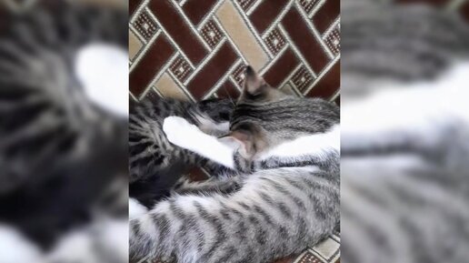 Котёнок Ральф заботится о маленьком подобрыше🐈⬛😘