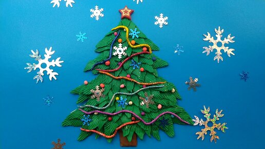 Пластилиновая аппликация. Новогодняя елка из пластилина на картоне.