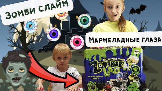 Зомби СЛАЙМ. МАРМЕЛАДНЫЕ глаза. Девочки делают светящийся слайм с пауками и черепами. СЛАЙМ слизь.
