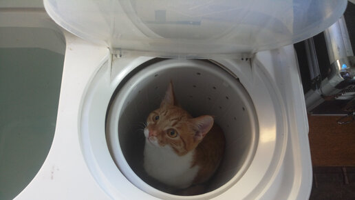 Кошачья помощь в стирке: котик знакомится с новой стиральной машинкой в доме