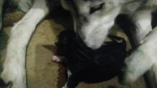 Роды хаски. Крупным планом. Писк на всю квартиру